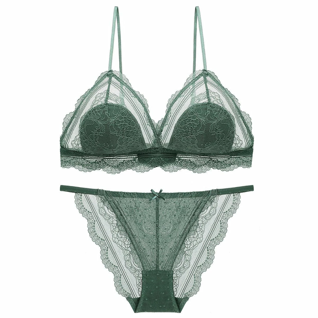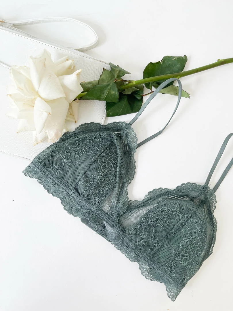 Our Benedetta Bralette comes in a khaki green tone. This bralette offers full bust coverage with great support.