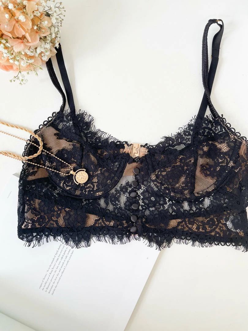 Our Concettina Bralette comes in a deep black tone. This bralette offers full bust coverage with great support.