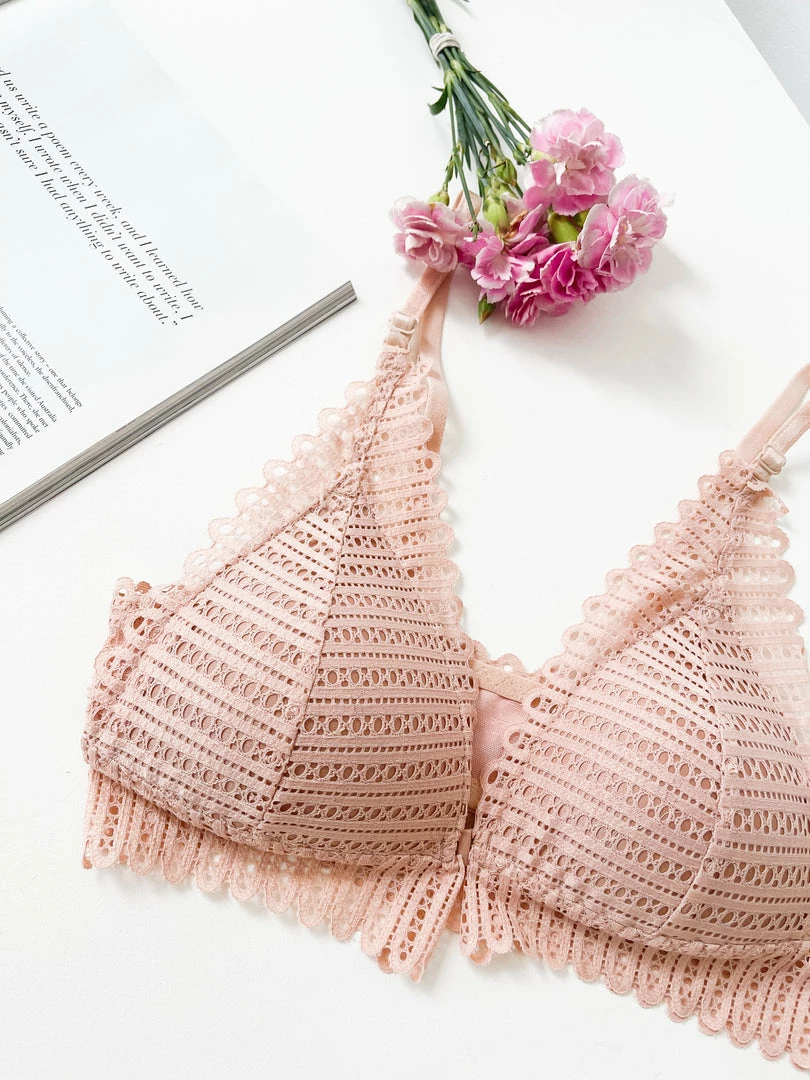 Our Consolatta Bralette comes in a pink blush tone. This bralette offers full bust coverage with great support.