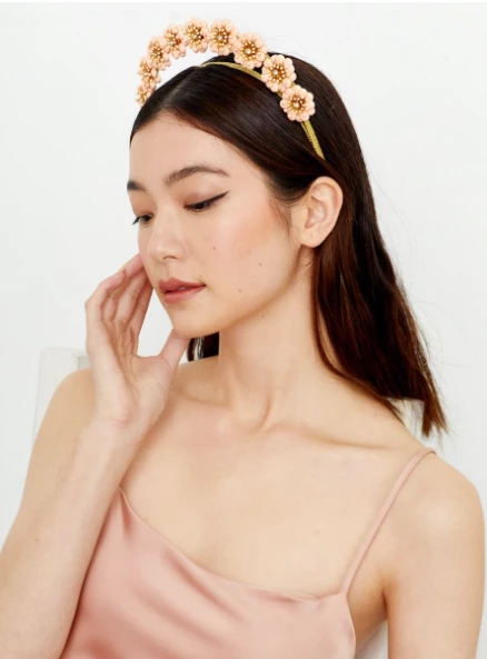 - Key Features: One size. Gold headband. Pink floral detailing.