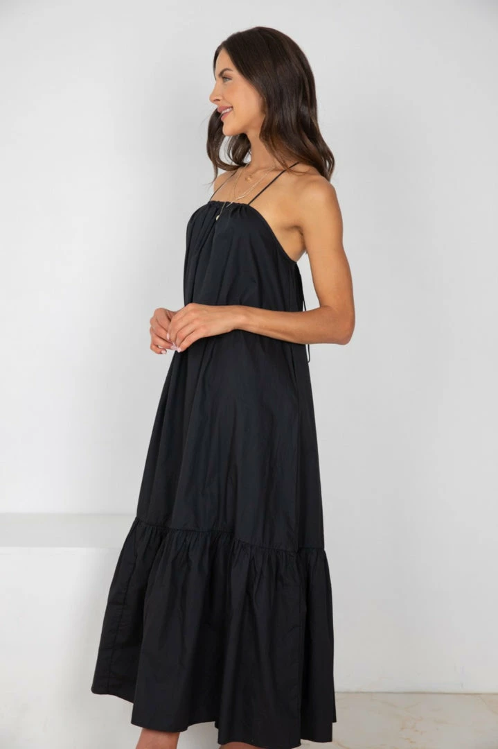 Our Letizia Dress comes in a classic black tone. This relaxed fit maxi is made from a layered flowy cotton material that is sure to make this a dreamy addition to your wardrobe. Pair with strappy flats for the perfect trans-seasonal look!