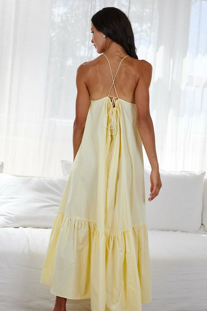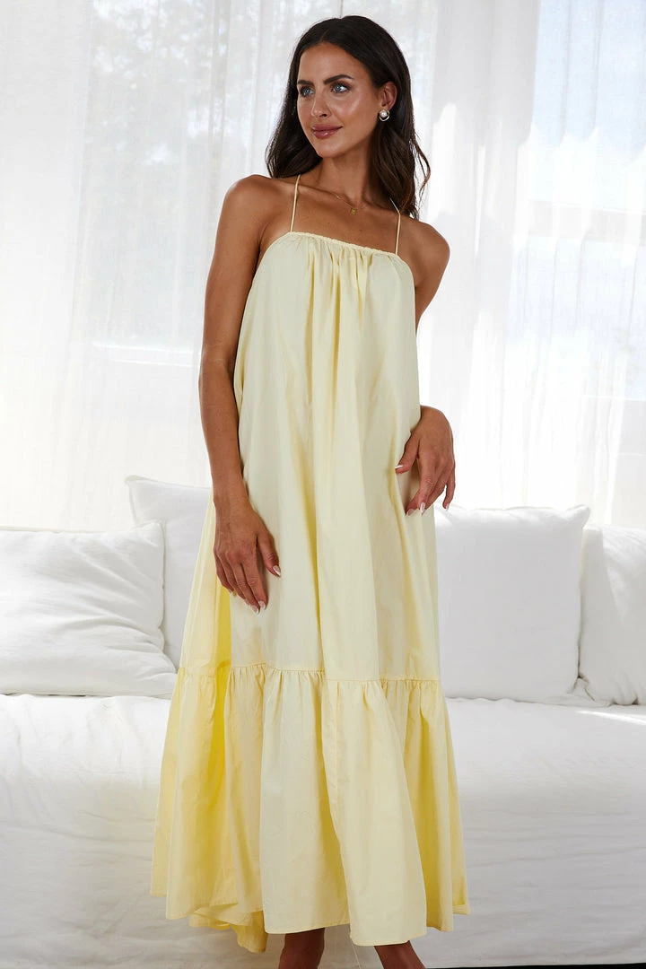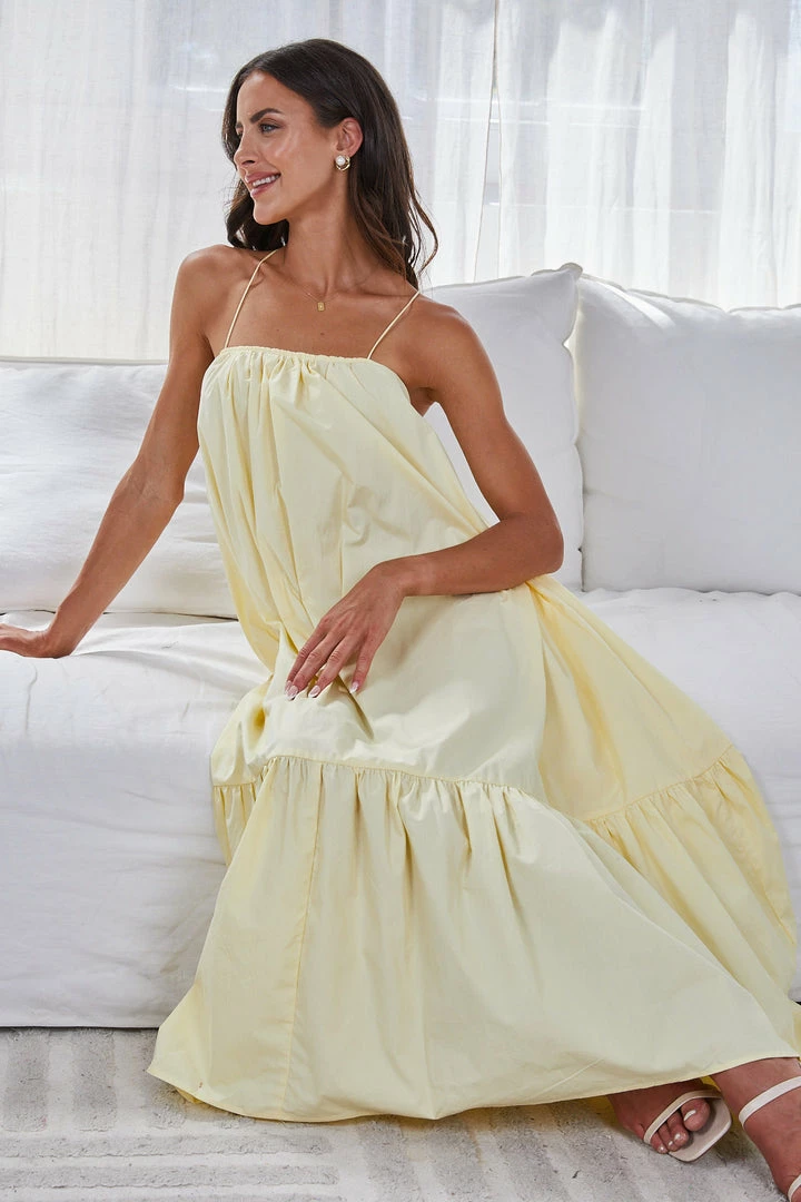 Our Letizia Dress comes in a fun yellow tone. This relaxed fit maxi is made from a cotton material that is sure to make this a dreamy addition to your wardrobe. Pair with strappy flats for the perfect trans-seasonal look!