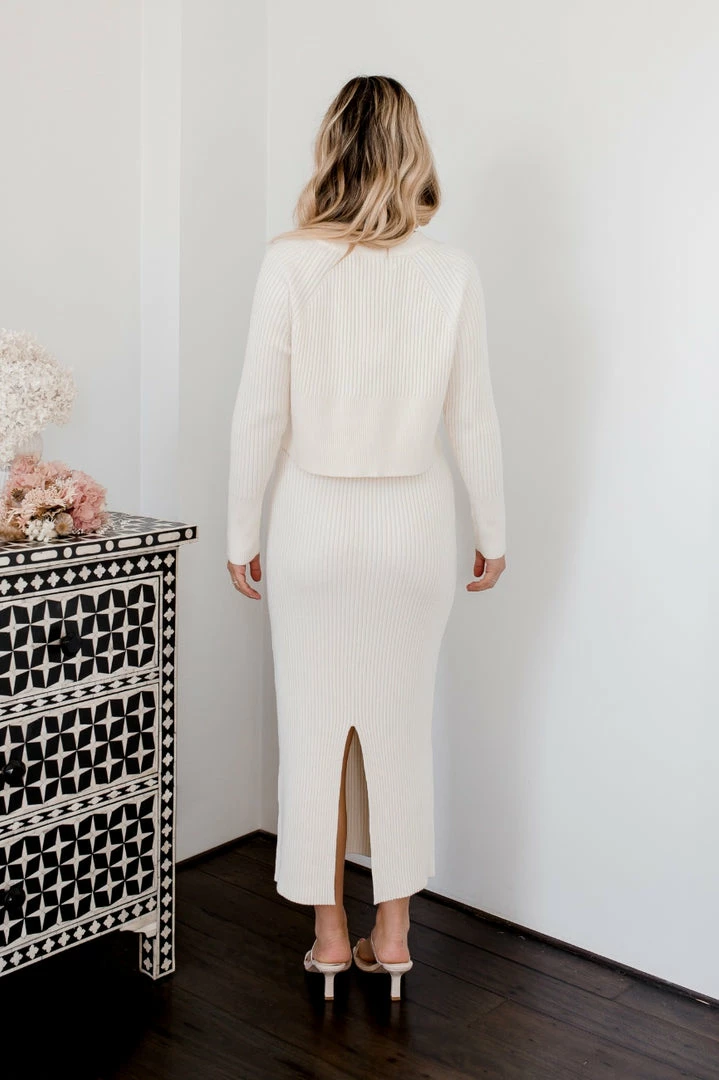 Our Margo Skirt is a gorgeous creamy white tone in modest midi length. This bodycon style is sure to highlight your gorgeous curves and cinches in the waist beautifully. Dress up with a cute bodysuit & nude heels or dress down with sneakers & your fave white t-shirt tied on the front. Pair with our gorgeous Margo Top for a luxe matching outfit.