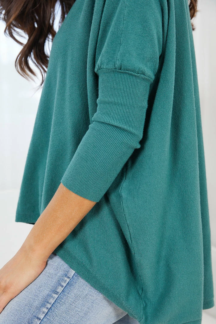 Our Clia Knit comes in a subtle green tone color in an oversized drape fit. This features a boat neckline, batwing long fitted sleeves, and a roomy fit making this ideal for growing baby bumps. This piece is made from lightweight breathable material which is perfect for a trans-seasonal outfit.