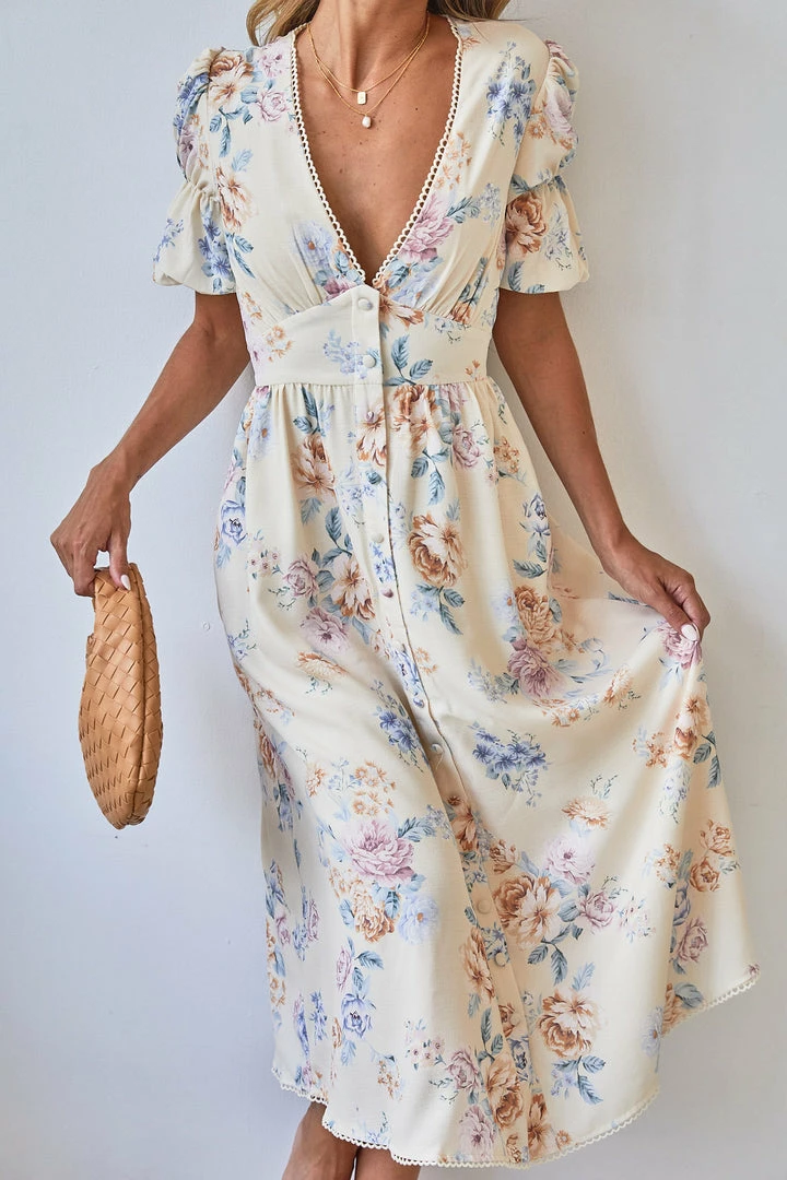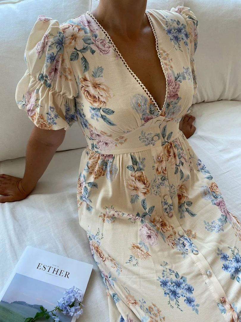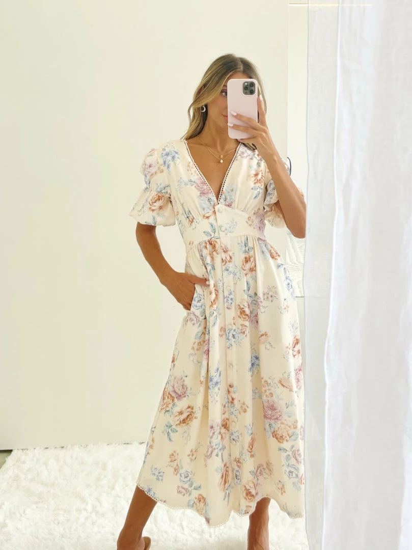 Desire CLOTHING Conchita Dress – Beige Floral