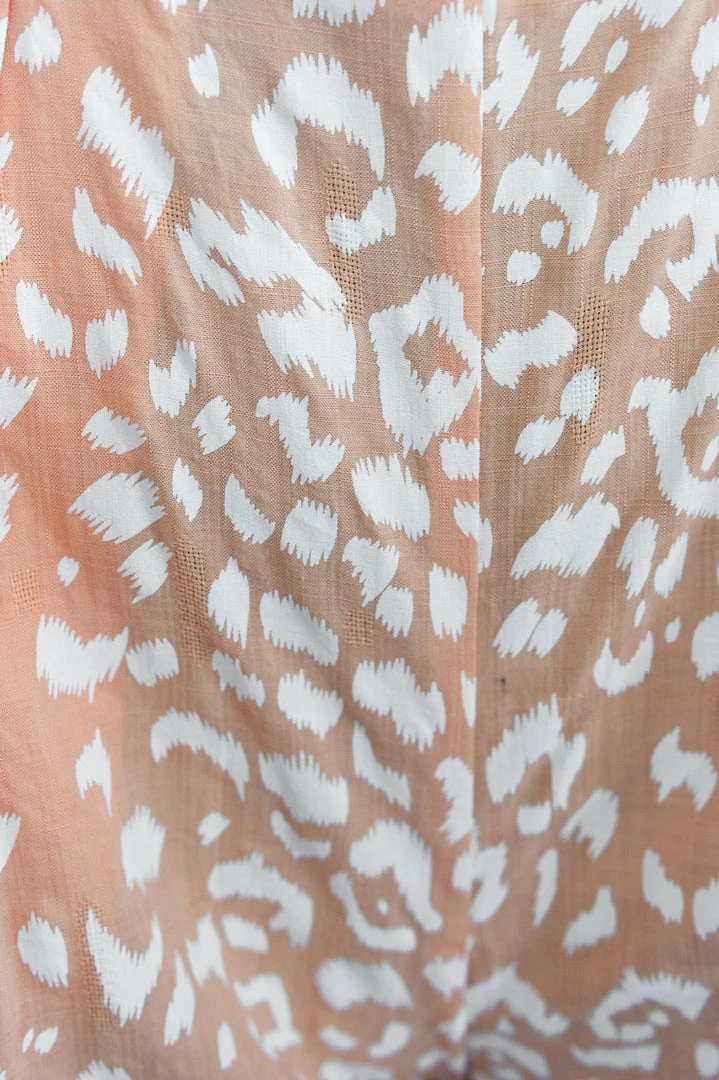 Our Gossamer Playsuit comes in a stunning peach base featuring a white leopard print. This fun playsuit features a deep V neckline with an adjustable tie detailing on the bust, relaxed sleeveless with frill detailing, and pleated shorts with pockets. Pair this playful playsuit with a sunhat and tan sandals for an easy summer look!