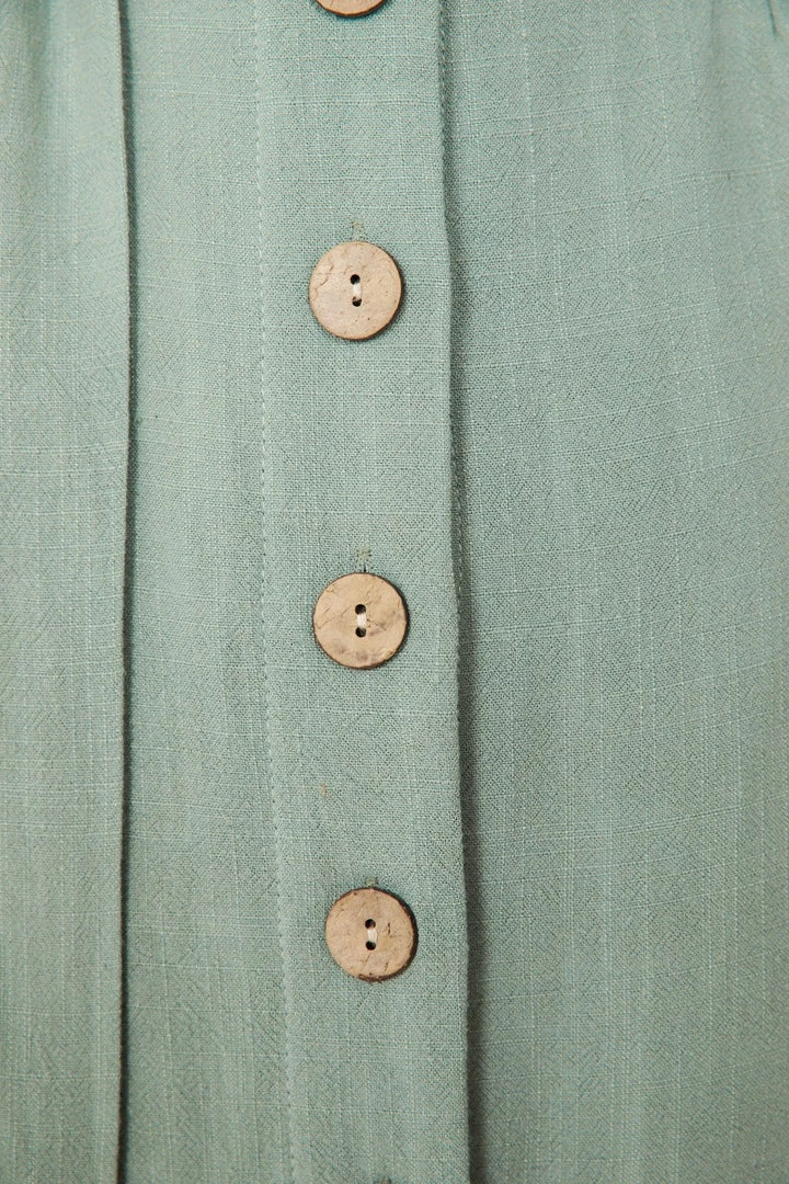 Our Isadora Dress comes in an earthy sage tone with a sweetheart neckline that accentuates the bosom. It features buttons on the front, pockets on the sides, and a matching fabric waist tie to cinch in the figure beautifully. This midi dress is perfect for the warm spring season!