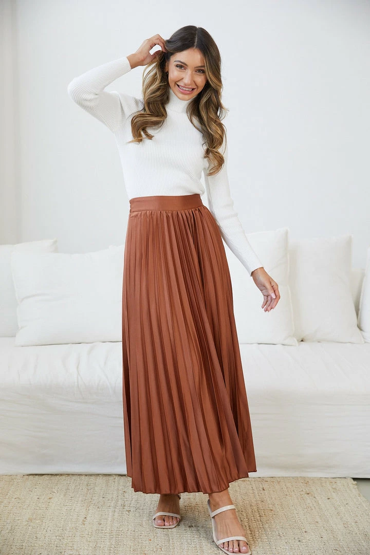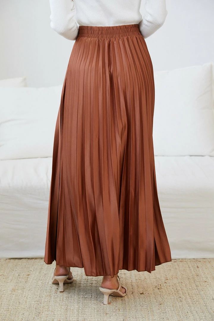 Our Celosia Skirt comes in an exquisite rust orange tone. It features a midi length and elastic on the waist. This flowy midi skirt pairs beautifully with a basic top for a fun casual look!