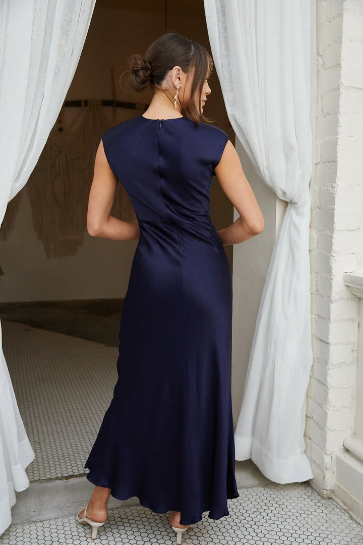 Our Cyllene Dress comes in a gorgeous champagne tone colour. Make an entrance in this lustrous dress reminiscent of the night sky, styled with sleek and flattering front ruching detail. This graceful dress is ready for weddings and other special occasions!