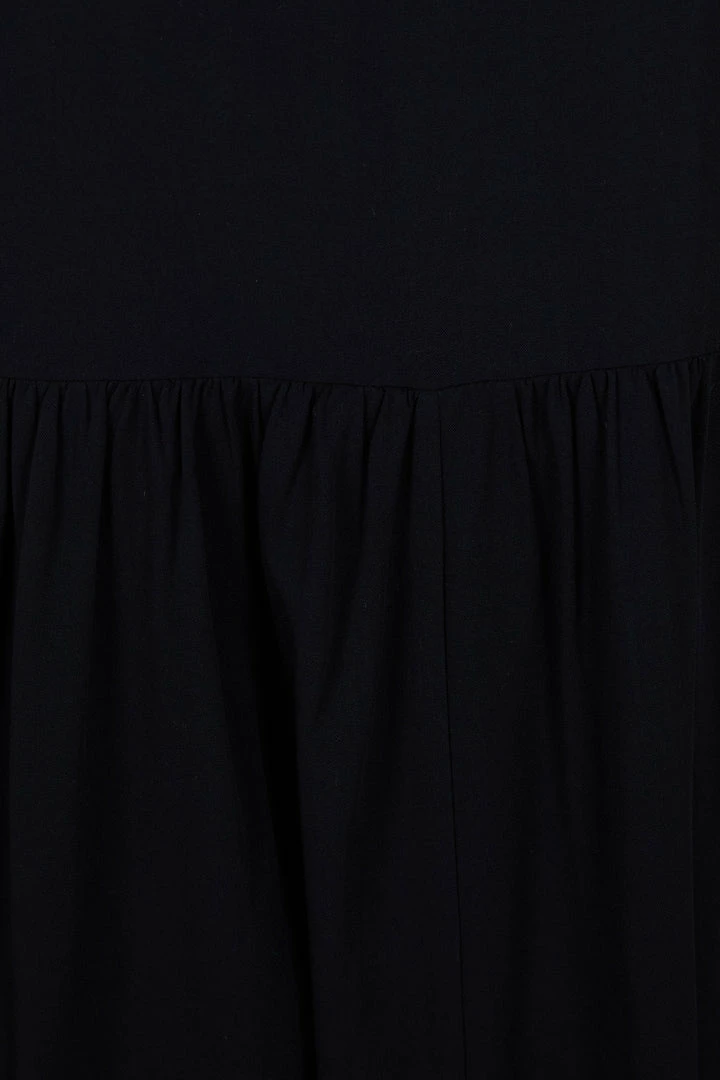 - Key Features: Mini length. Bishop long sleeves. Round neckline. Gathered fabric. Relaxed Fit. Maternity friendly.