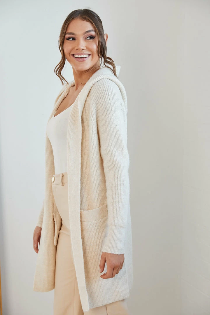 Our Aerilyn Cardigan comes in a delicate cream colour. Your cosy sanctuary this cold season, this cover-up features long sleeves, open front, side pockets and knit fabrication that will keep you warm and comfortable. Wear it with jogger pants for a stay in or with a cute singlet and ripped jeans for a day out!