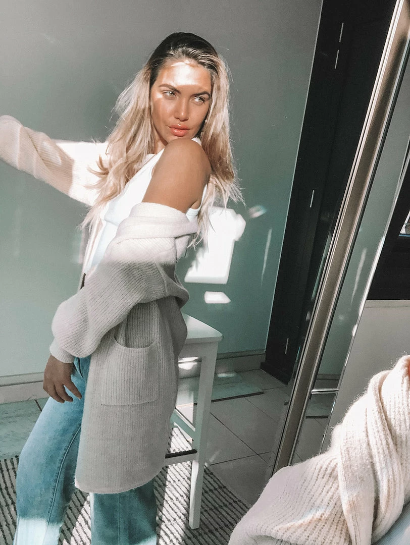 - Our models are wearing a SM / AU 8/10 / US 4/6. This cardigan is oversized.