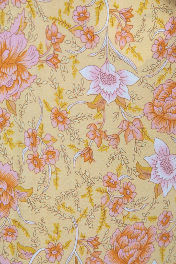 Our Seara Dress comes in a stunning yellow base multi prints. This relaxed mini features a round neckline with tie detailing, with cinched sleeves. This gorgeous piece will add a lovely pop of color to your summer wardrobe!