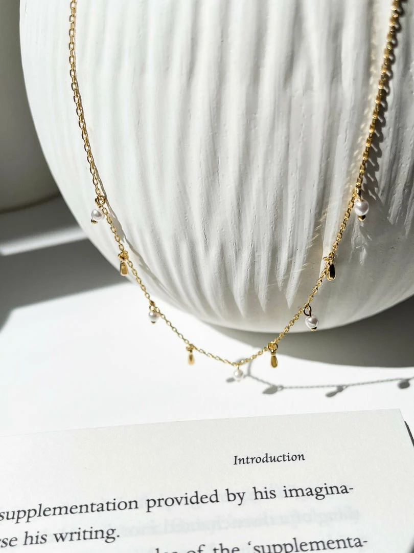 Our Cassandra Necklace is a pearl styled necklace in a matte gold finish, the necklace can be worn by itself or layered with other necklaces.