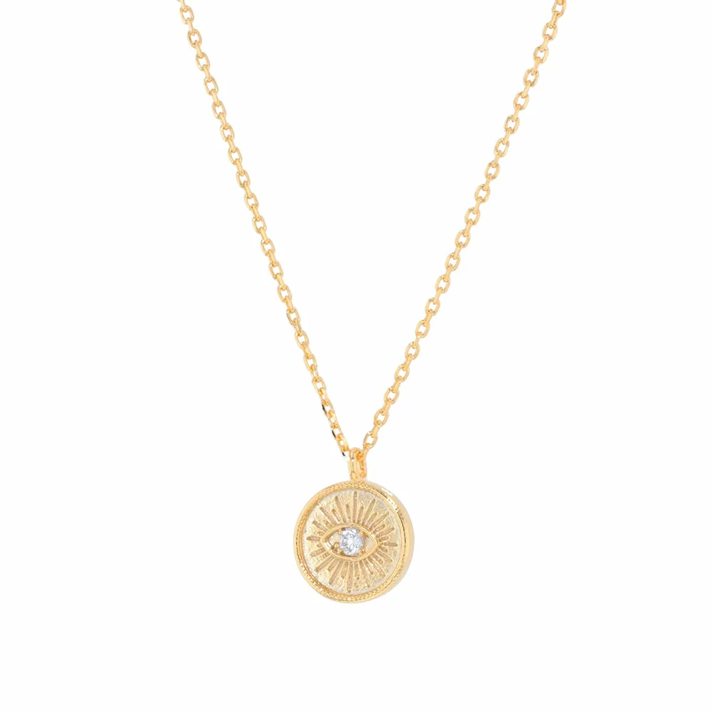 The Emilia Eye Necklace is a delicate style with round eye pendant with small crystal.