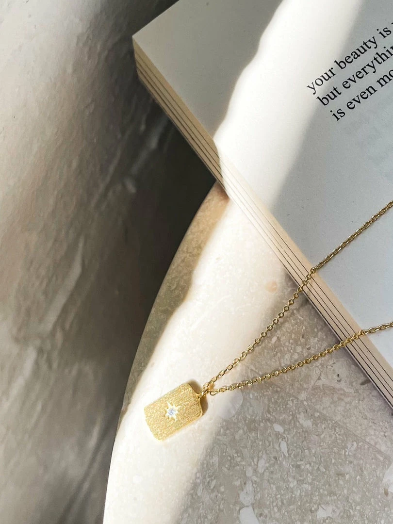 Our Hayley Necklace is a matte gold finish, the necklace can be worn by itself or layered with other necklaces.