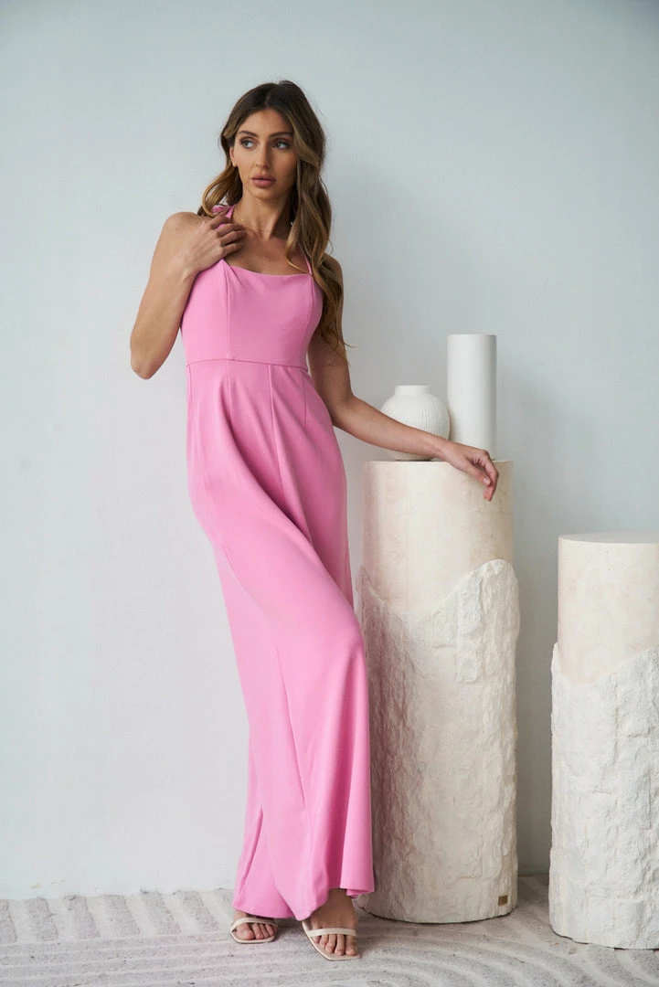 Our Felice Jumpsuit comes in a bright pink tone. It’s a sleeveless, maxi length jumpsuit that’s paired perfectly with heels for a stunning look in the spring/summer season!