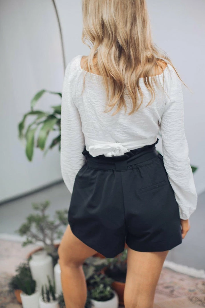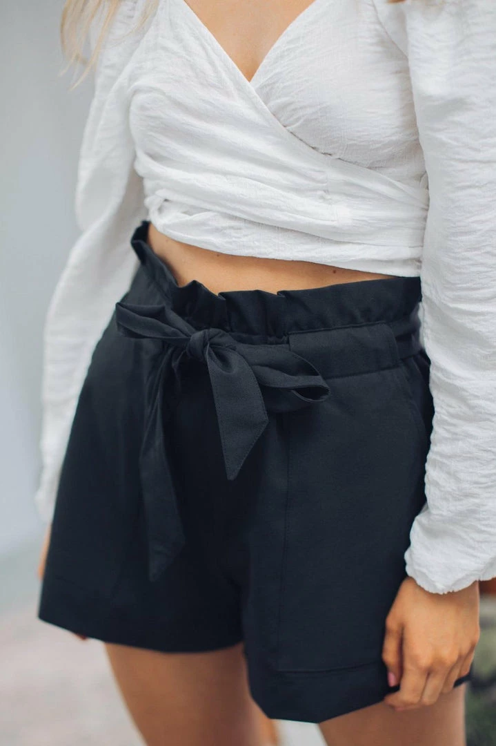 Our gorgeous Yola Shorts are your everyday dream pair of bottoms. They come in a classic black tone in a relaxed silhouette, sure to be your next summer favourite! The pockets on sides are functional whilst the waist tie on front can be tied in a cute bow adding a touch of femininity to this style.