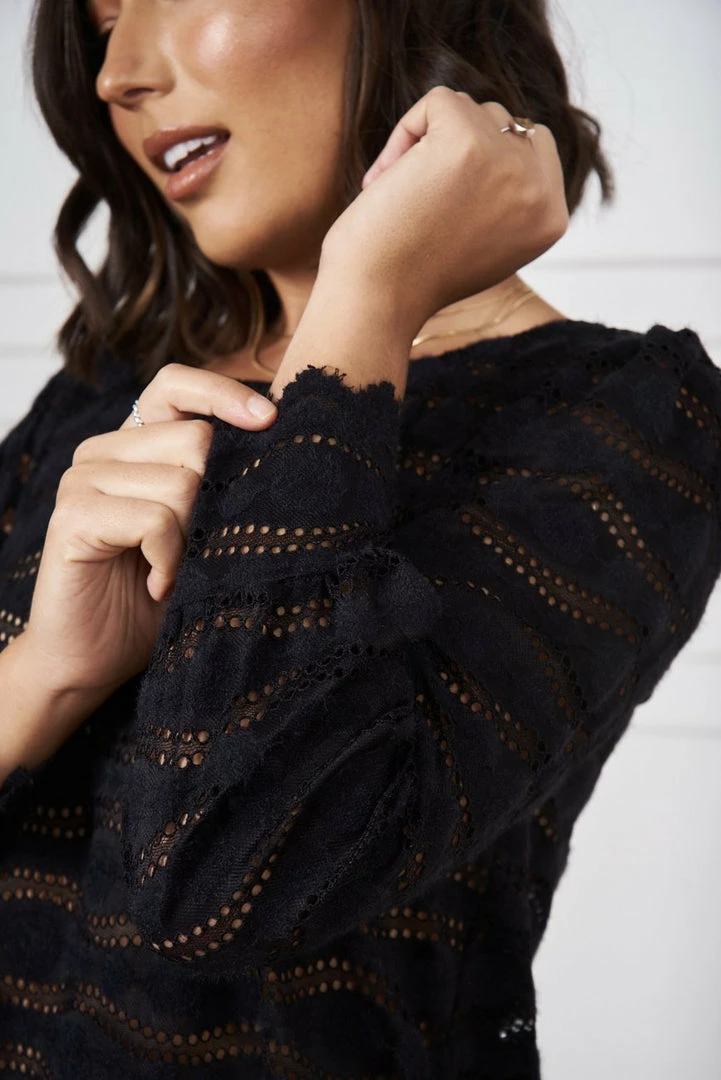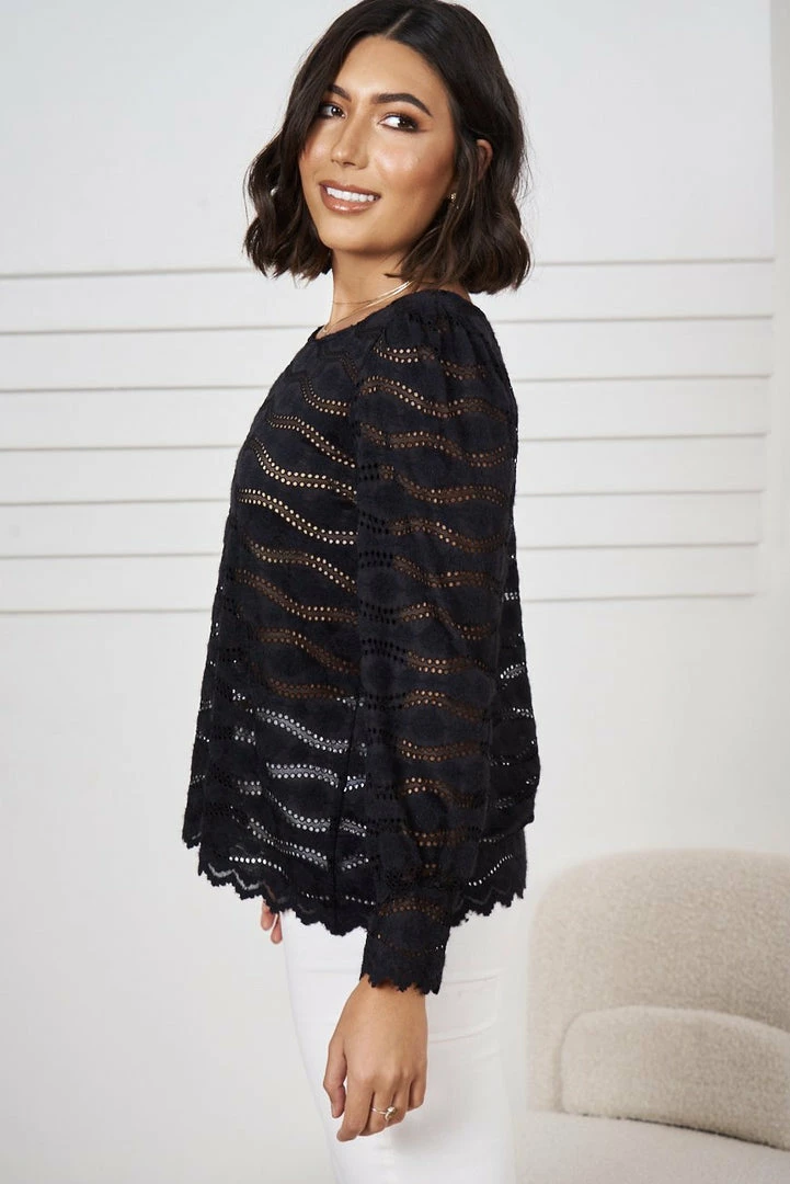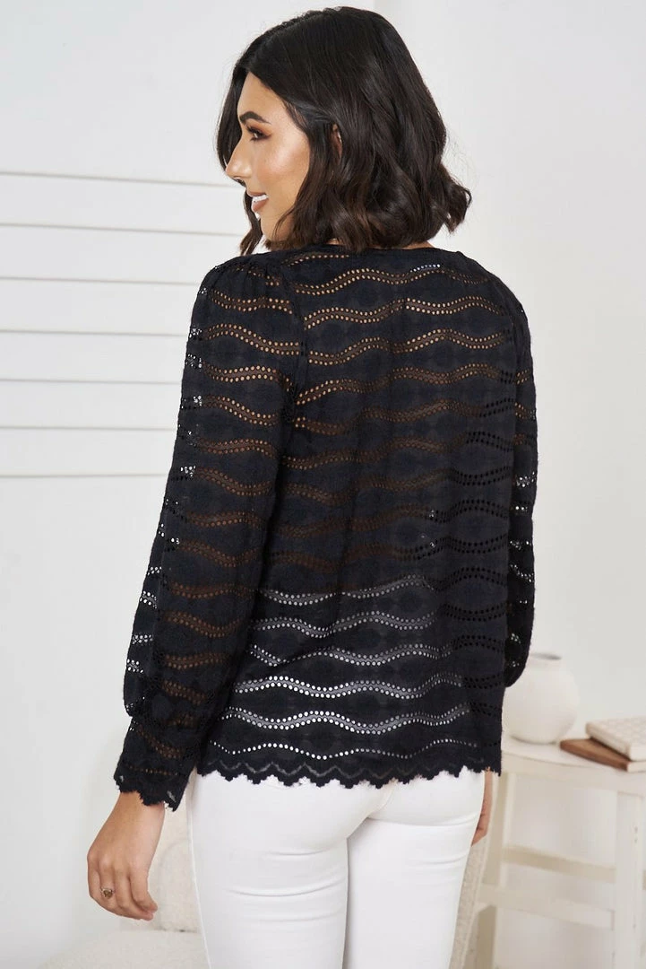 Our Clemantis Top comes in a deep black tone. It features a round neckline and long sleeves for a comfortable, relaxed fit. This versatile top is perfect for casual outings, or taking on the day at the office!