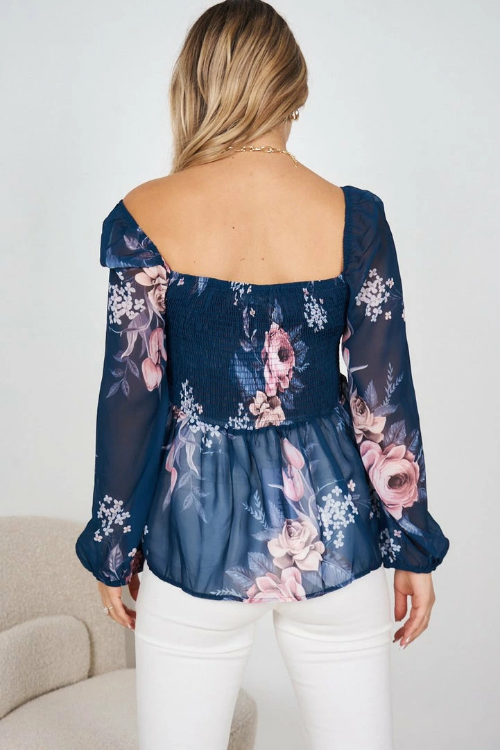 Our Laurie Top comes in a dark green tone base, with a white and blush tone floral print. It features a square neckline and long relaxed sleeves for a comfortable, relaxed fit. This cute top pairs beautifully with basic pants for an stunning transseasonal look!