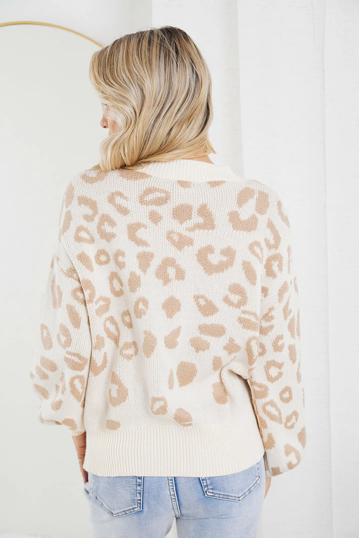- Key Features: Round neck. Long sleeves. Leopard print.