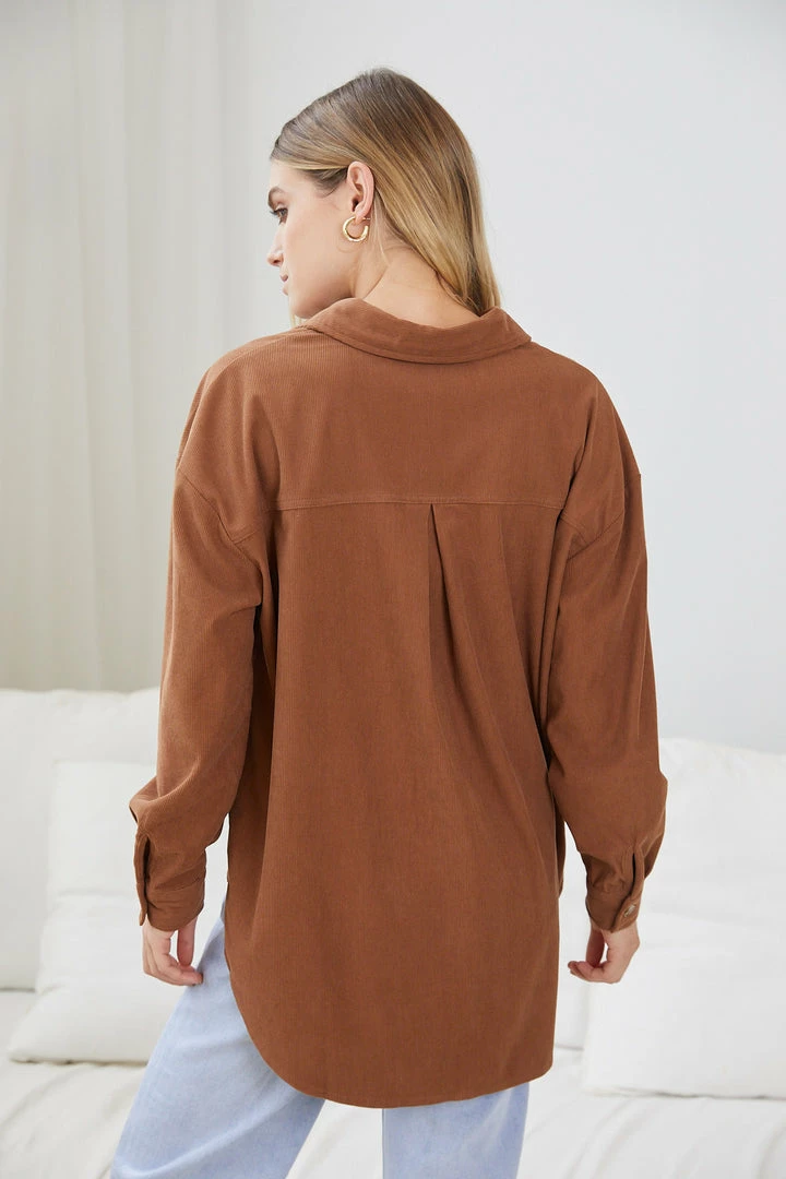Our Florie Shirt comes in a chocolate brown colour. A trend proof staple that can stand the test of time, this timeless top features classic collar, centre-front buttons, patch bust pocket, long cuffed sleeves and rounded hem. Pair it with office trousers on weekdays and our Gigi Jeans – Light Blue on weekends!
