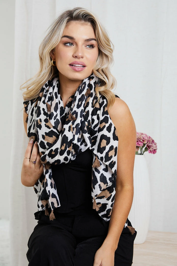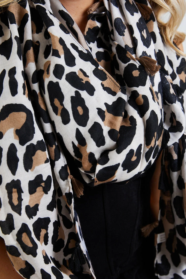 Our Lility Scarf comes in beige, brown and black toned leopard print. A fun addition to your wardrobe, this scarf features tassel detailing at the edge. Wear it over a plain top or a dress for a stylish look this season!