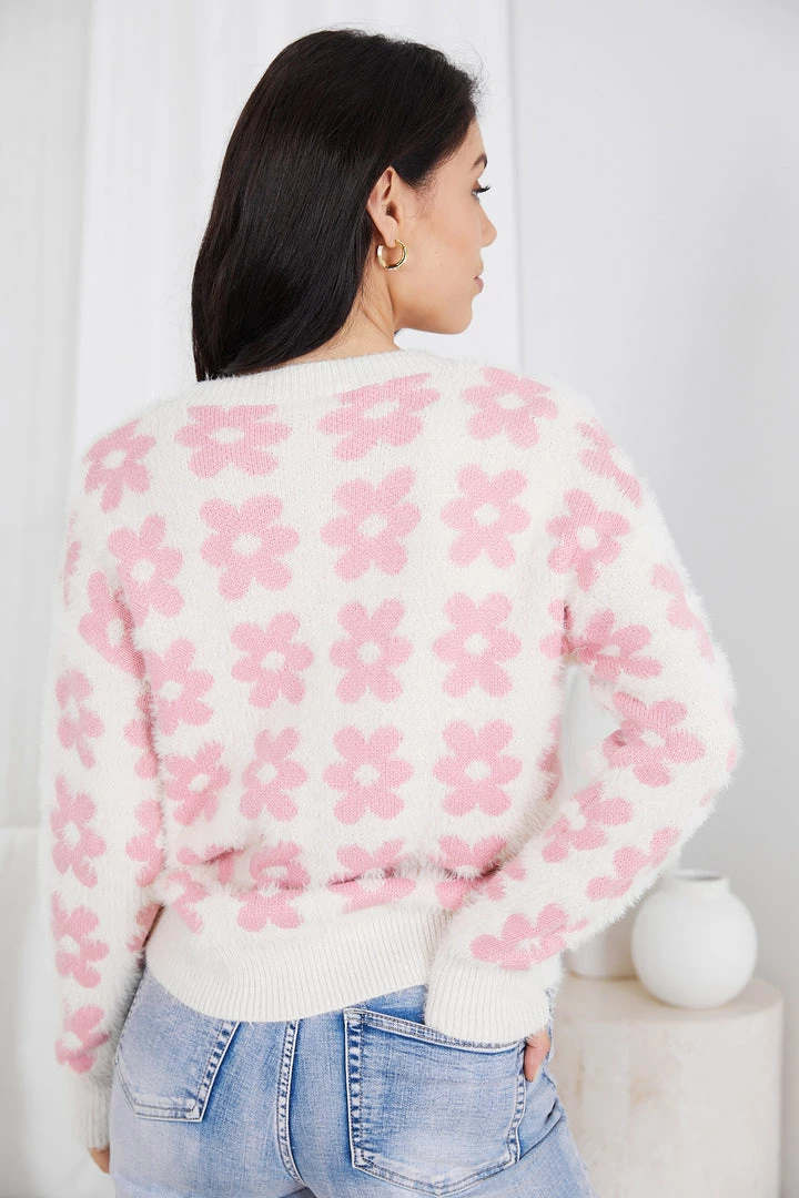 Our Tedynna Knit comes in a cream base with cute repetitive flower prints in pink. Function and fashion go hand in hand in this jumper that oozes with femininity with its dainty print, round neckline and long sleeves. This stylish piece will protect you from the cold and can be worn with a flowy mini skirt and dangling earrings!