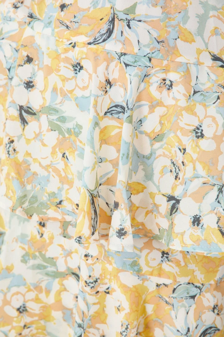 - Key Features: Midi length. One shoulder. Asymmetrical neckline. Butterfly sleeves. Tiered skirt. Relaxed fit. Fabric waist tie.