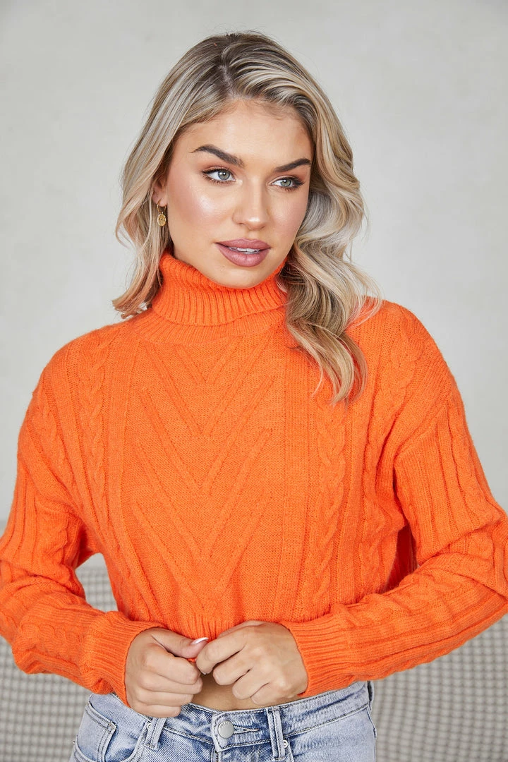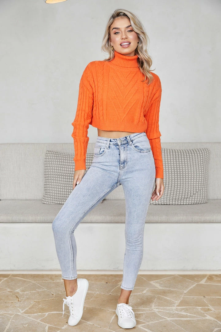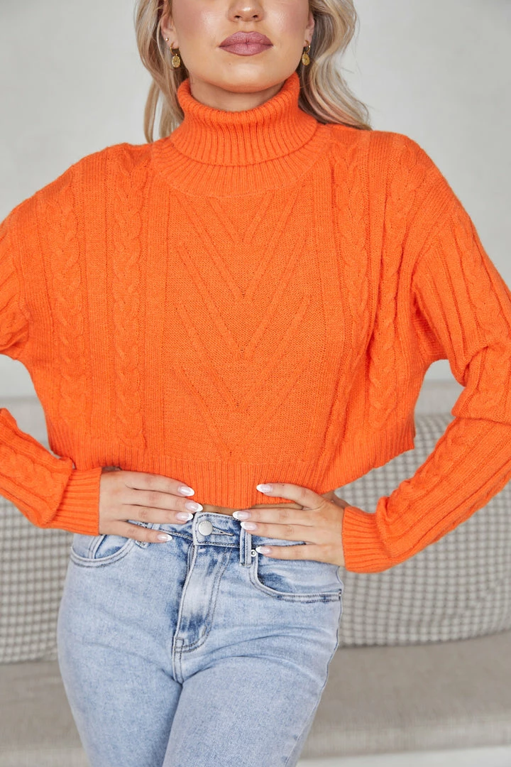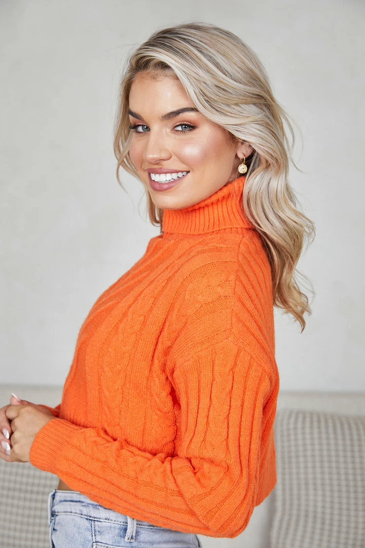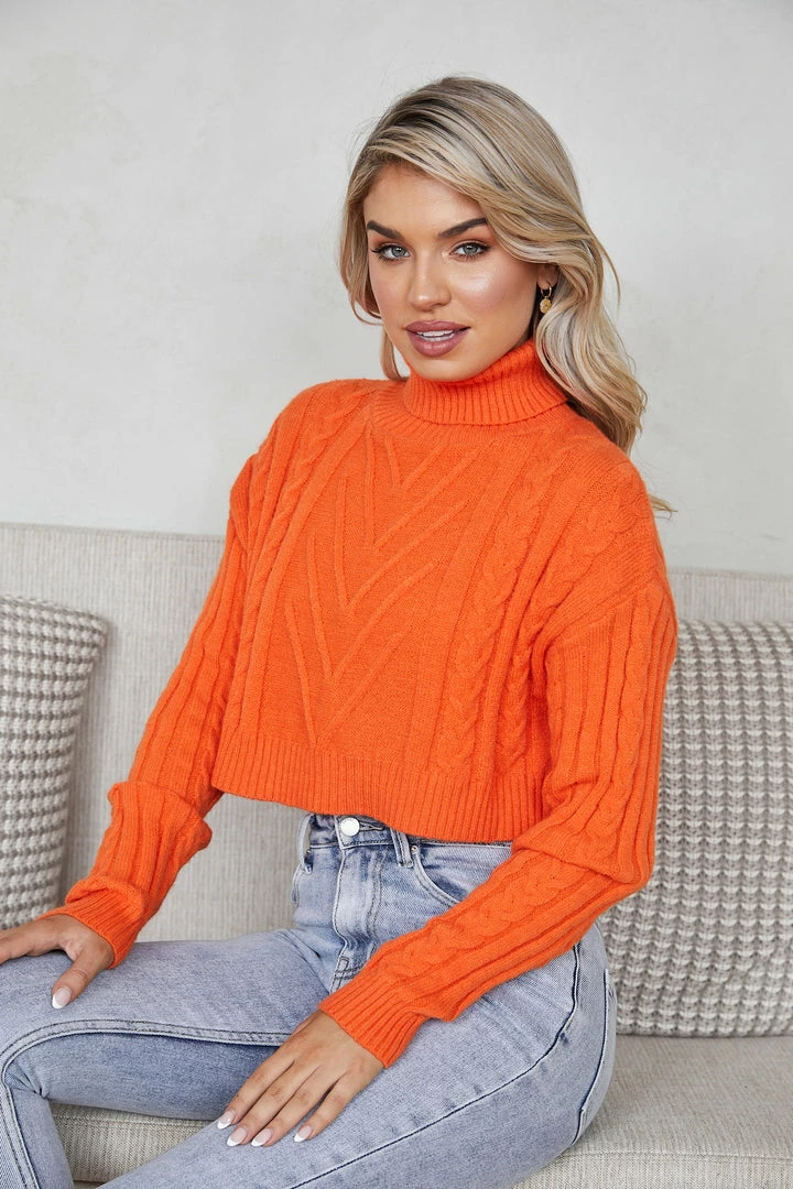 Our Jenice Knit comes in a fun orange tone color. No modern wardrobe is complete without a great multi-textured knit in a wearable hue this season. Style with jeans for an effortless off-duty look.