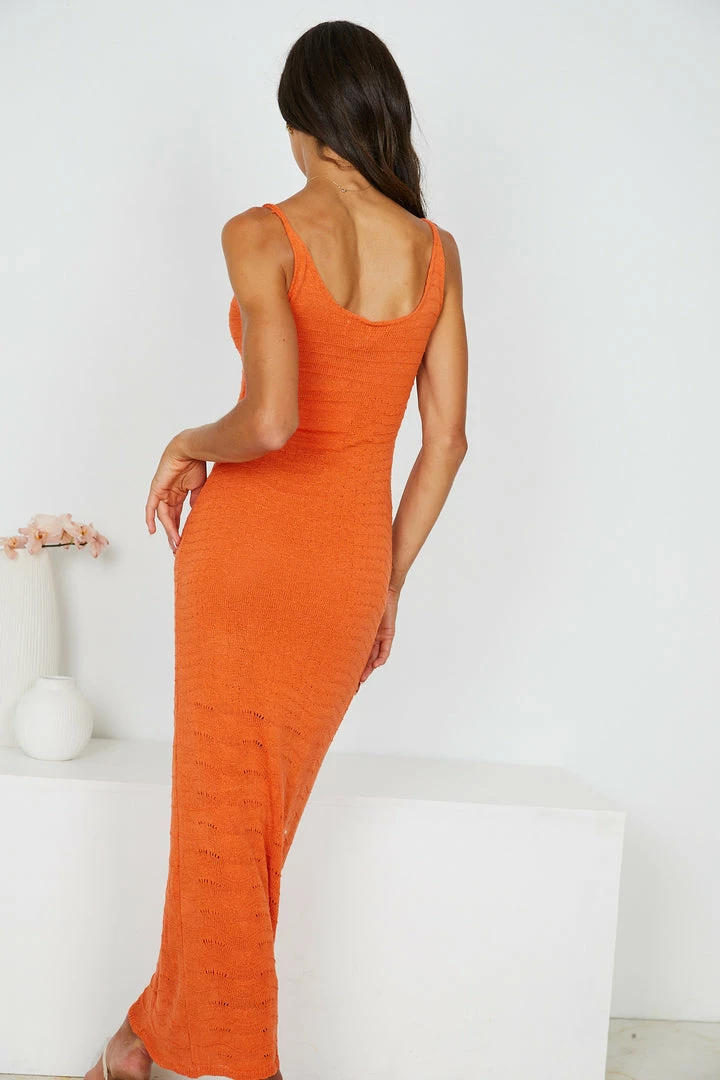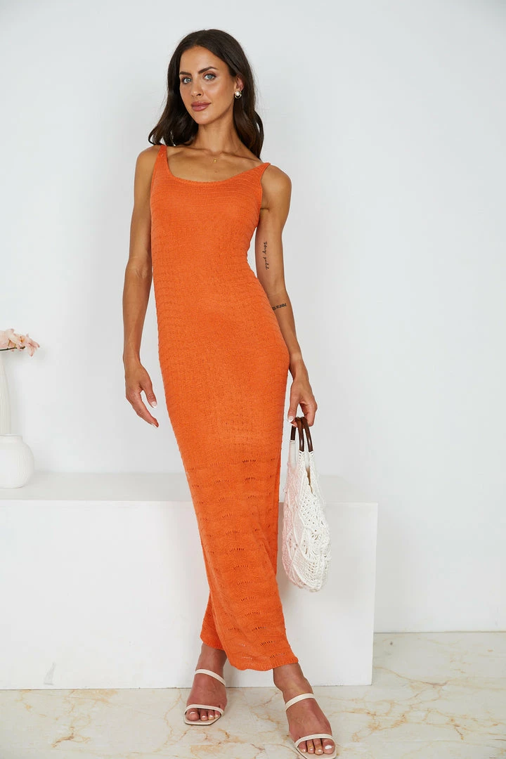 Our Crossa Dress comes in a bright orange color. This maxi features a boat neckline, short sleeves, and a figure-flattering silhouette that will draw every eye in the room. Paired with a sunhat, this bright piece is perfect for brunch dates and weekend picnics!