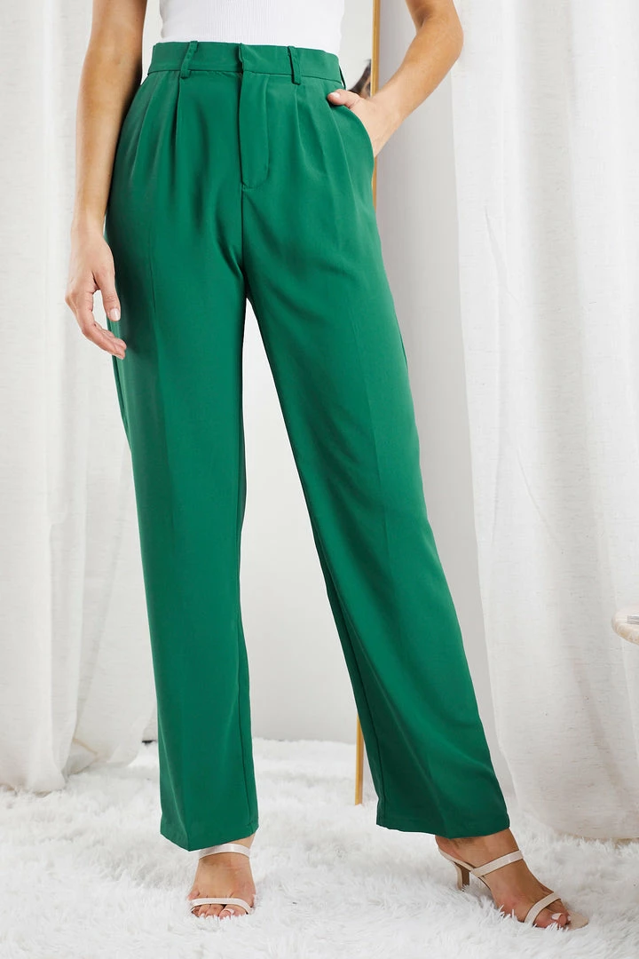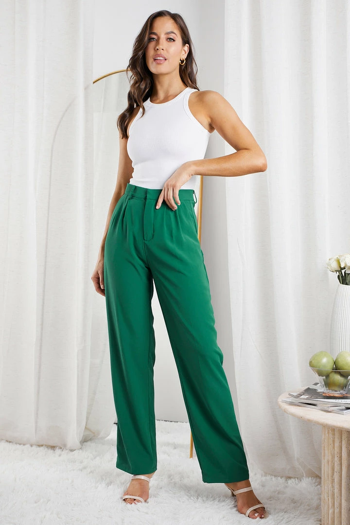 Our Kamie Pants come in a stunning green colour. These corporate pants feature belt loops on the waistband, zip and clasp closure, pleats, and side pockets. Perfectly pairs with our Kamie Blazer.