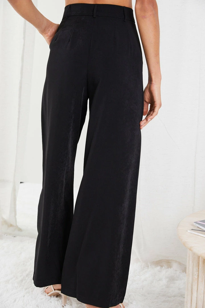 Our Adamaris Pants come in a deep black tone. Dare for some flare in these comfortable wide-legged pants featuring a button and zip closure on the front, belt loops on the waistband, pleats, and side pockets for practicality. These go well with plain or printed tops and flats or heels.