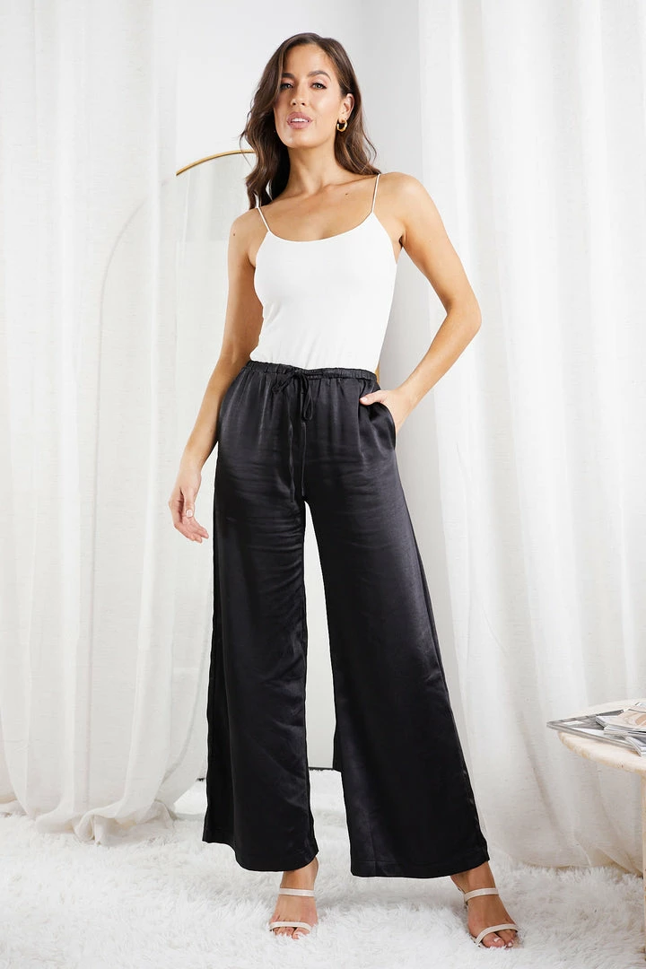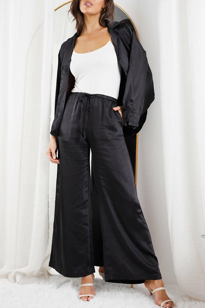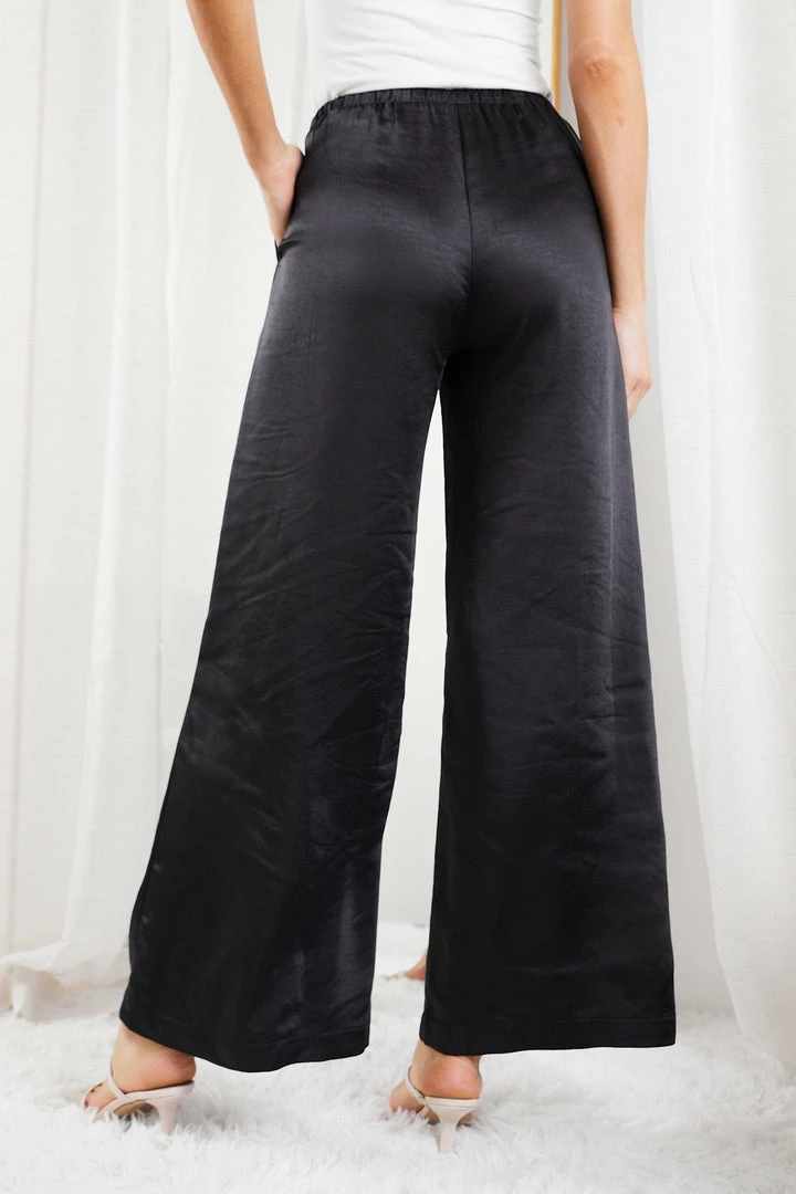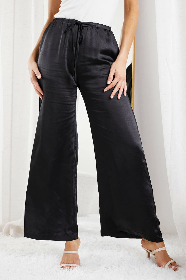 Our Pumpkene Pants come in a deep black colour. Like a diamond that’s precious and rare, shine your way into greatness in these wide legged satin pants that feature a garterized waist and an adjustable drawstring tie for a better fit. Complete the ensemble with our Pumpkene Top – Black!