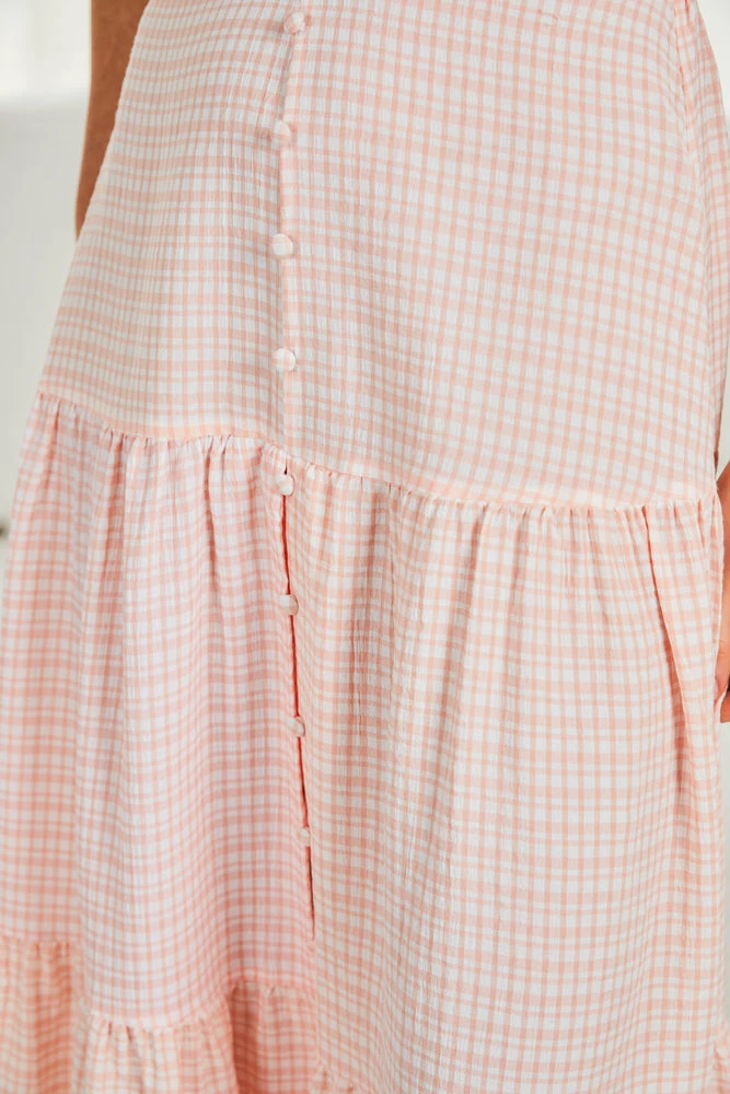 Our Jayma Skirt comes in a gorgeous white and orange checkered print. It features a midi length, and pairs beautifully with a basic top or our Jayla Top for an effortless casual look this spring season!