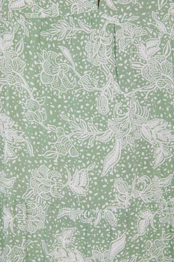 Our Lulua Dress comes with a calming green base with an off-white print. The v neckline features a keyhole opening detail and the maxi length skirt is a relaxed fit making this ideal for the warmer months ahead. This maxi pairs beautifully with tan slides and chunky hold hoops.