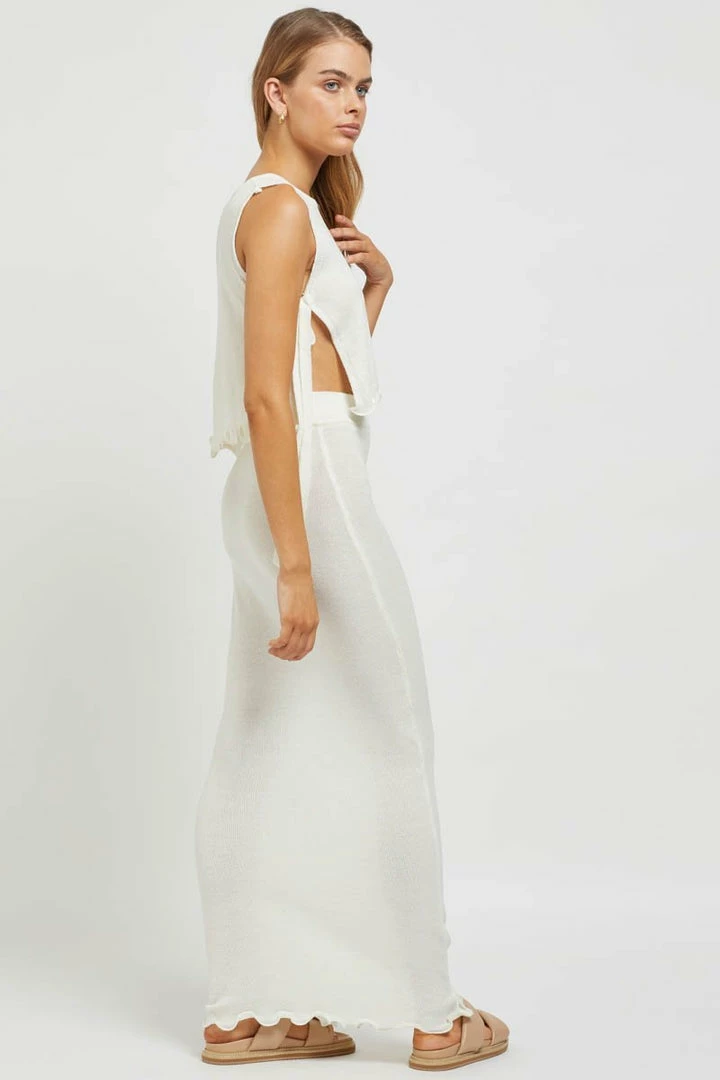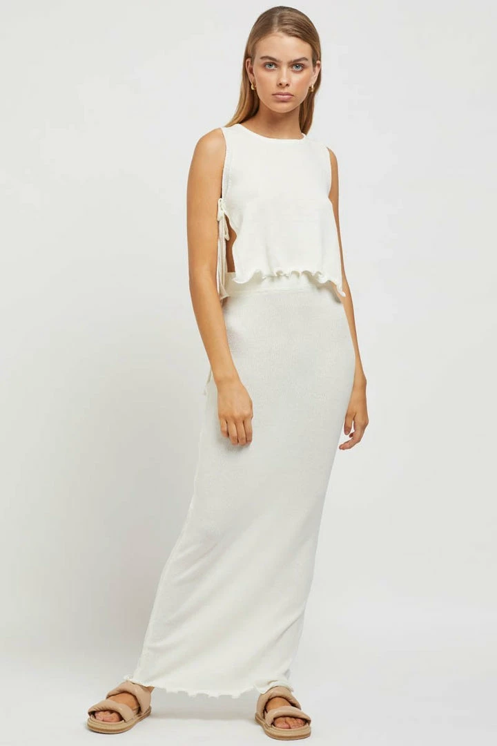 - Key Features: Maxi skirt and crop set. High next crop. Adjustable tie sides. Frill detail at bottom of crop and maxi. Skirt is lined. Elastic waistband. Comfortable fit. True to size.