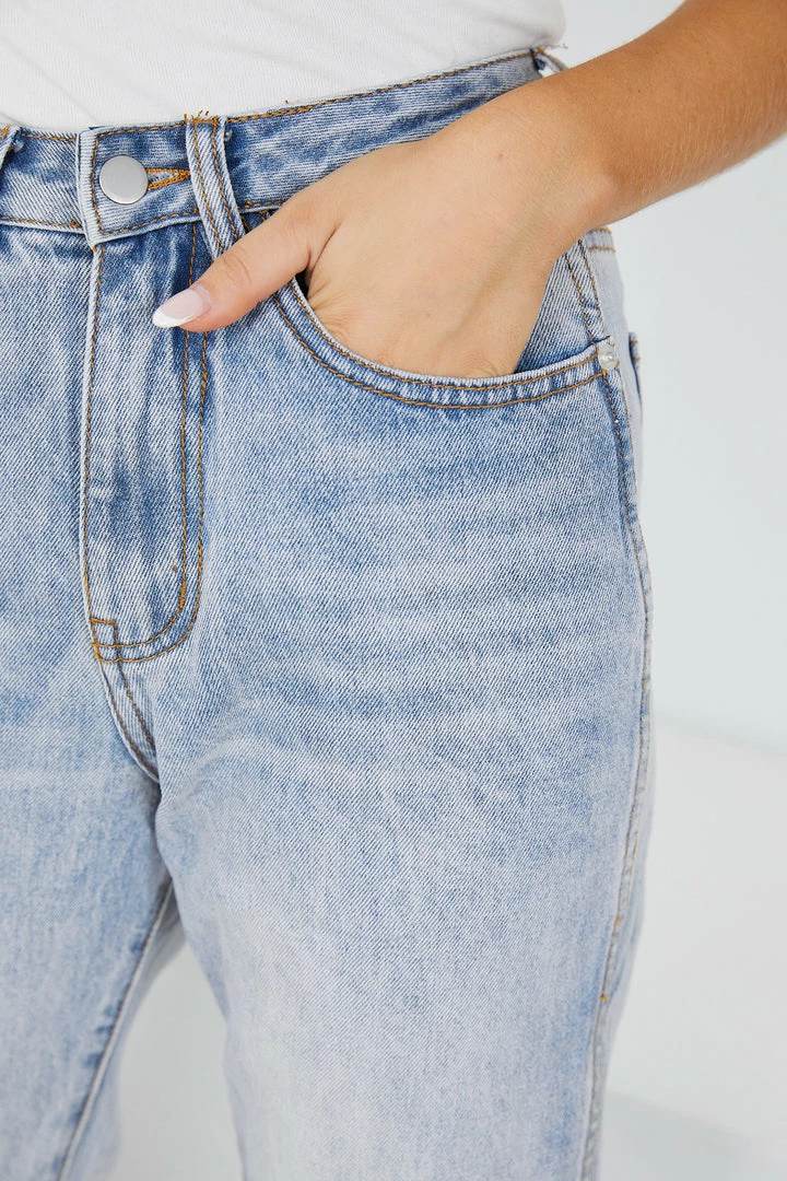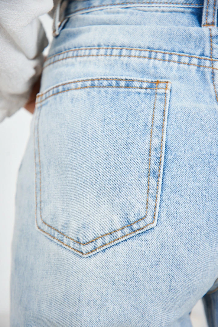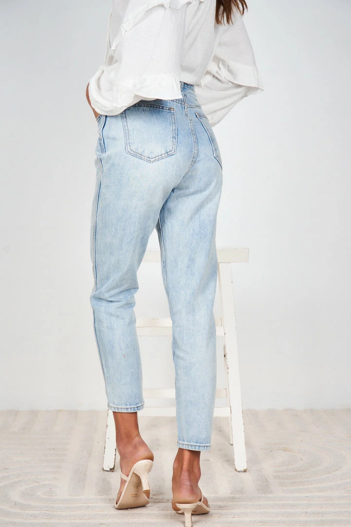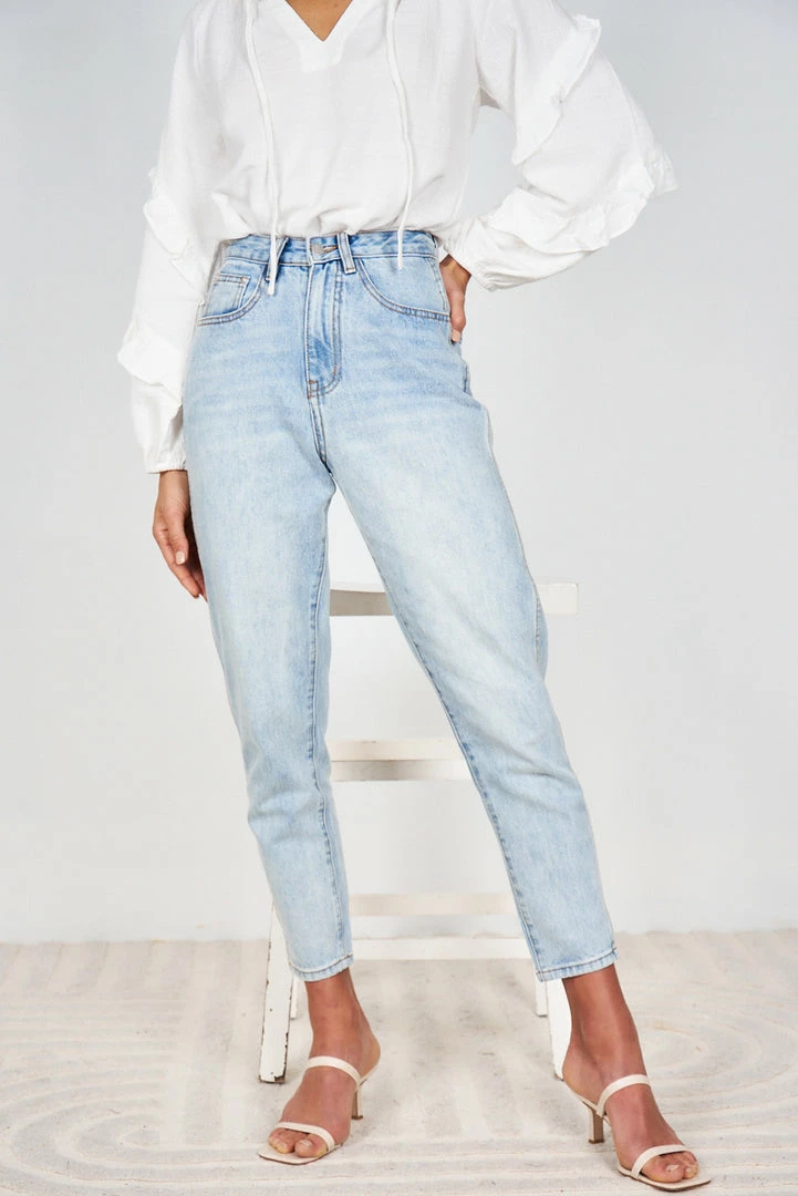 Our Lainey Jeans come in a light blue tone. The high waist, medium weight non-stretch fabric, with a slim leg fit is a classic model that will give a gorgeous line to your shape. With pockets on the front side and back, it is a must have for any wardrobe as it easily matches with so many styles.