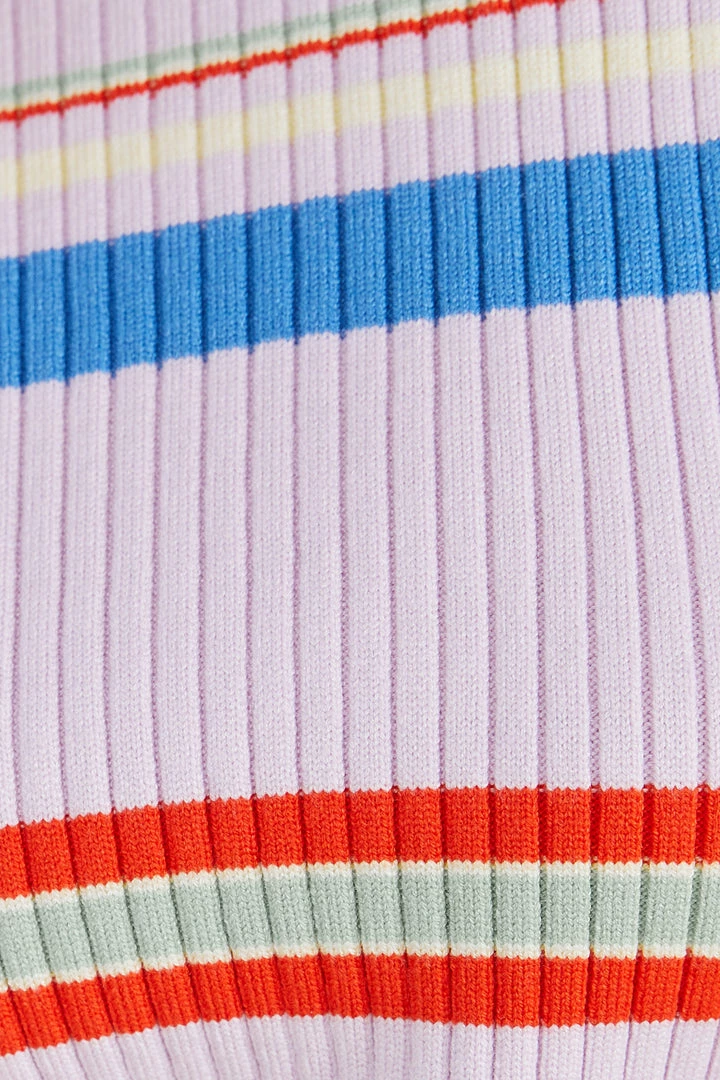 - Key Features: Round neckline. Long drop sleeves. Knit fabric. Stripe print.