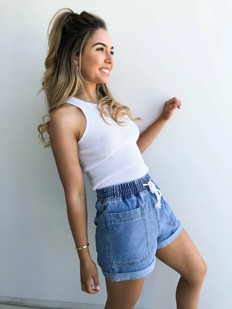 Our Pique Shorts are a vintage blue denim tone. It’s a gorgeous medium weight material in a relaxed fit perfect for days in the sunshine. The white drawstring features elastic for a comfortable fit. The oversized pockets on front are a statement to these shorts. Pair with your fave bodysuit and sneakers for an off-duty look.
