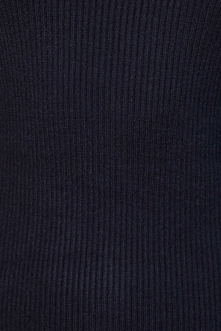 Our Benedita Dress comes in a deep black tone. It features an off-the-shoulder neckline, long bishop sleeves and a contrasting rib knit pattern all over the garment. This cute midi is the perfect formal piece for cold winter evenings!