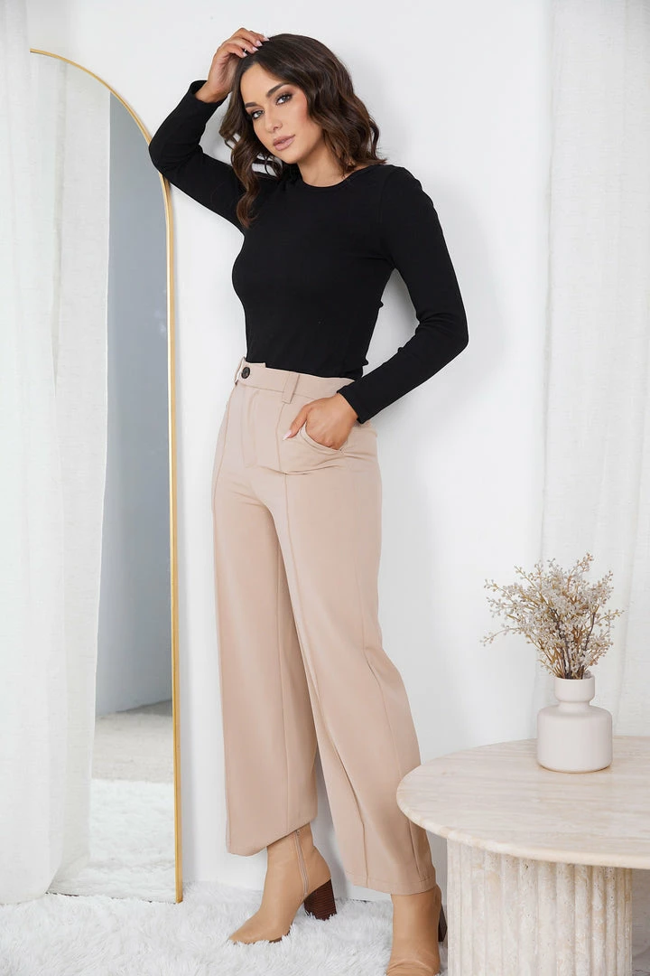 Our Wyanet Pants come in a light camel tone. Flash a smile and walk a mile in these stroll-friendly pants that offer ultra comfort with its wide legged fit, belt loops, button & zip closure and front pleats. These pants can be worn in the office by pairing it with a classic shirt then change to a crop top for a night out!
