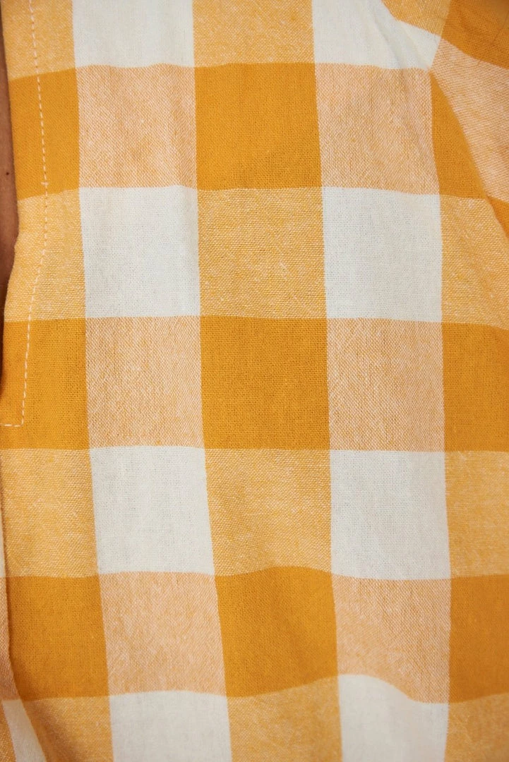 Our Josepha Top comes in a tangerine orange & white tone check print. It features a round neckline and short sleeves for a relaxed, comfortable fit. It pairs beautifully with jeans or a basic pants for a stunning spring seasonal look!