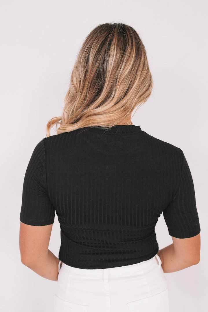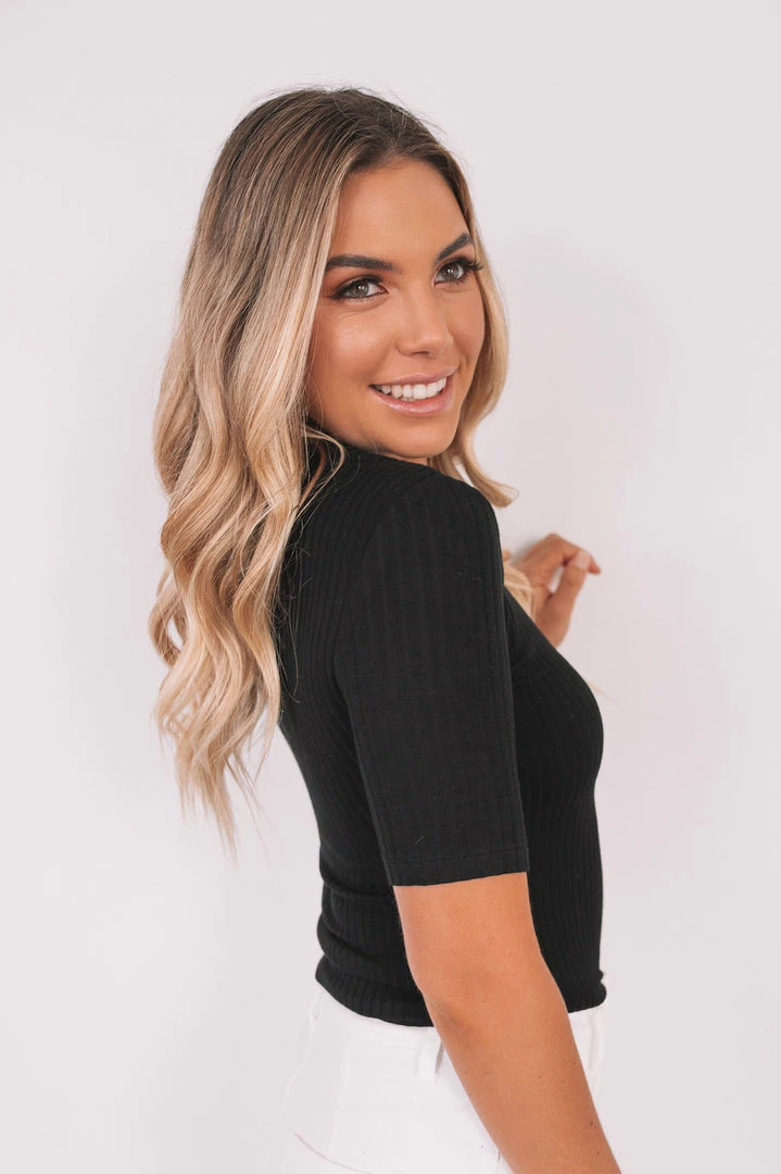 Our Micah Top comes in a classic black tone. This ribbed high neck is the perfect transitional piece for those cooler summer nights. Pair with your favourite denim jeans or midi skirt for an effortless look!