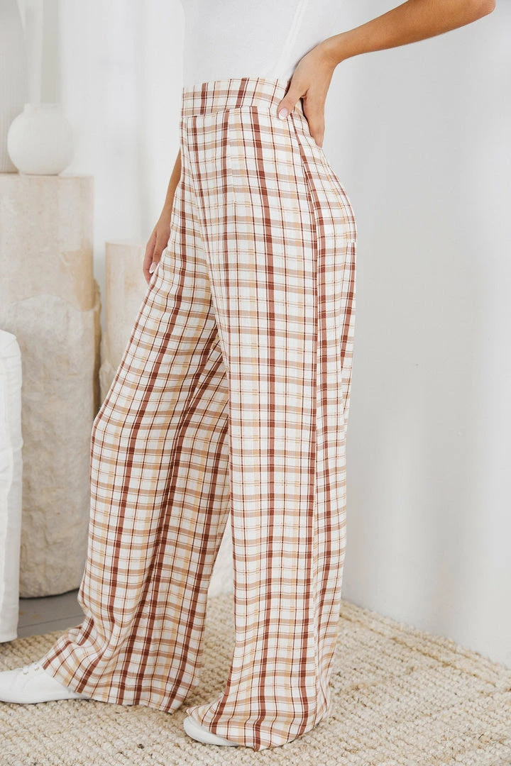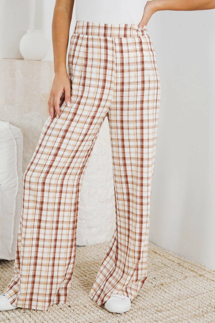 Our Bee Pants come in a lovely beige tone base with brown check prints. These relaxed high-waisted culotte-style pants are perfect for any weather and pair beautifully with any basic top!