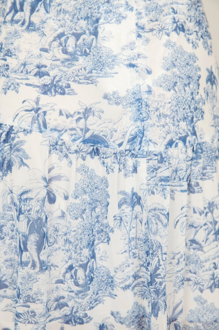 Our Hydie Skirt comes in a white base with blue floral print midi. Pair with a basic tee and heels and gold accessories for a stunning on-the-go outfit.